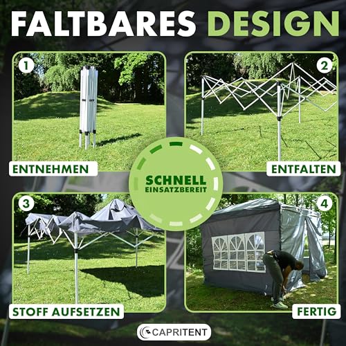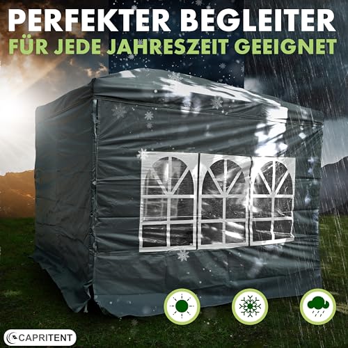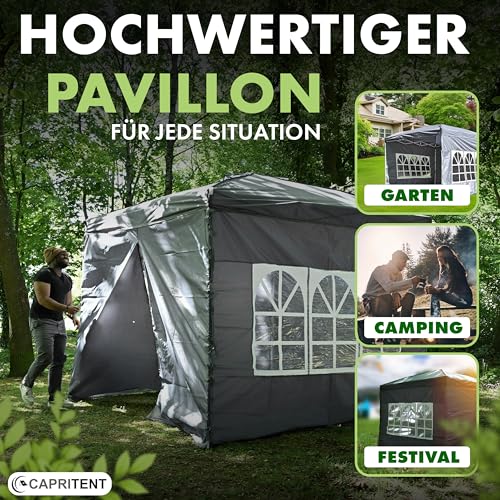 CAPRITENT® Pavillon [3x3m] Wasserdicht, Stabil und Winterfest – Hochwertiger Faltpavillon 3×3 mit 4 Seitenwänden & Tür, Ideal als Partyzelt, Gartenpavillon oder Campingzelt – Einfacher Pop-up Aufbau