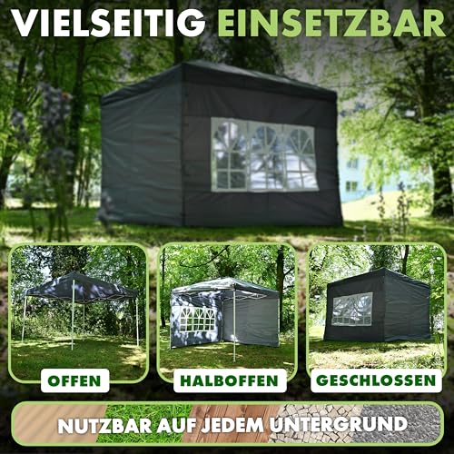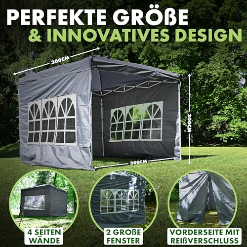 WETTERFEST – Wasserabweisende Polyester-Überdachung und 4 bodenlange Seitenwände schützen das 3×3 Pavillon faltbar zuverlässig vor Sonne, Regen und Wind. Perfekt für Garten, Terrasse oder Veranstaltungen geeignet.