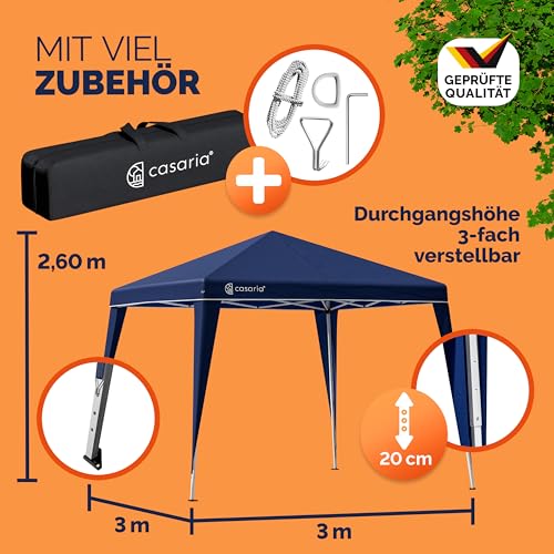 POP-UP-FUNKTION: Der CASARIA Pavillon Capri mit einer Fläche von 3x3m ist faltbar und wasserdicht. Der Pavillon kann denn Partyzelt oder alias denn Gartenpavillon genutzt werden und ist durch die Pop-Up-Schaubild in wenigen Minuten auf- und abgebaut. Der Transport ist dank der Tragetasche kinderleicht.