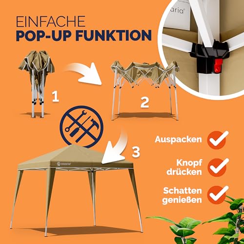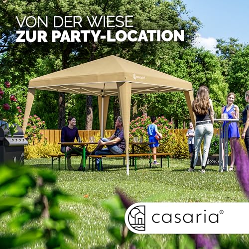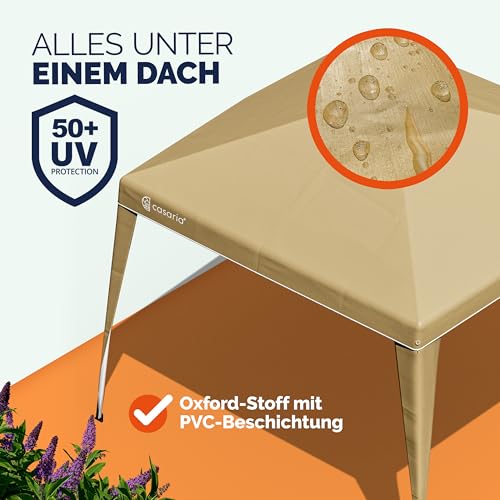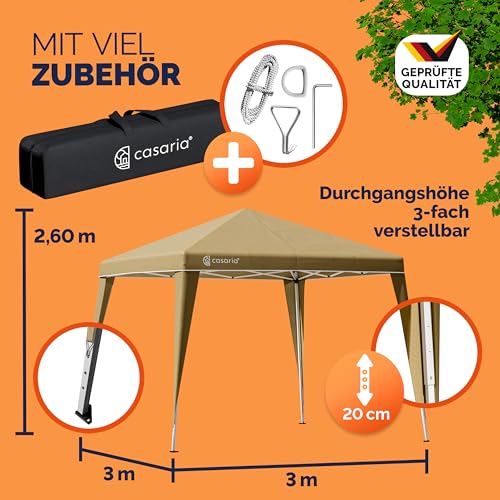 POP-UP-FUNKTION: Der CASARIA Pavillon Capri mit einer Fläche von 3x3m ist faltbar und wasserdicht. Der Pavillon kann wie Partyzelt oder vulgo wie Gartenpavillon genutzt werden und ist durch die Pop-Up-Darstellung in wenigen Minuten auf- und abgebaut. Der Transport ist dank der Tragetasche kinderleicht.