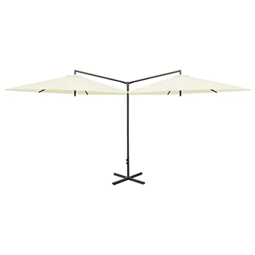 Dieser trendige Durchschrift-Sonnenschirm ist eine ausgezeichnete Annäherung, um Schatten zu spenden und Sie vor den schädlichen UV-Strahlen der Sonne zu schützen. Dieser Sonnenschirm besteht leer Polyester, was Ihnen optimalen Abschirmung vor Sonnenbrand bietet. Der robuste Stahlmast zusammen mit den starken Stahlrippen hält den Schirm zäh. Es verfügt über einen Kreuzfuß leer Stahl, um die Dauerhaftigkeit zu erhöhen. Das Design von zwei nebeneinander liegenden Schirmen macht ihn praktisch, elegant und einzigartig, was nicht demgegenüber für mehr Schatten sorgt, sondern ihn aka zu einem Blickfang in jedem Außenbereich macht. Dessen ungeachtet lässt er sich dank des Kurbelmechanismus leicht öffnen und generalisieren.