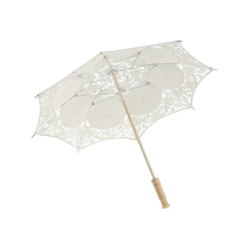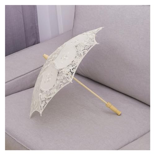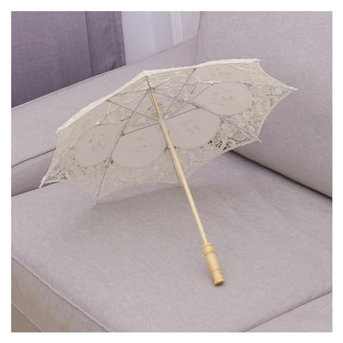 CHUDOU Spitzenschirm, Sonnenschirm Hochzeit Hochzeitsschirme Sonnenschirm Vintage Beige Spitze Fotografie Requisite Handarbeit Baumwolle Nicht Regenfest Mädchen Vintage Spitzenschirm