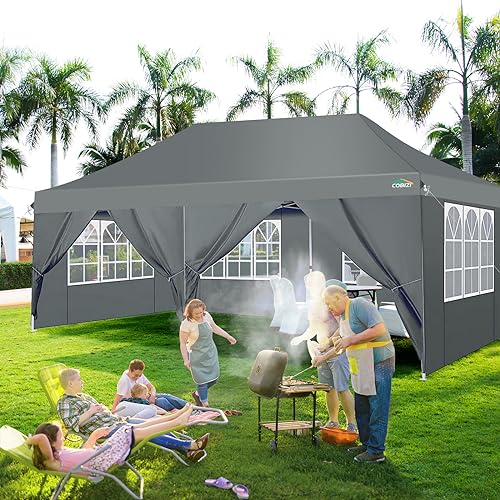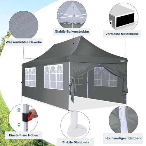 [Robuste und schützende Konstruktion]: Der Cobizi Faltpavillon 3x6m wasserdicht erschütterungsfest besteht jeglicher hochwertigen Materialien. Das 210D Oxford-Gewebe ist mit einer speziellen Beschichtung versehen, die SPF 50+ UV-Abschirmung und Wasserbeständigkeit bietet und also Alterungsbeständigkeit und Abschirmung vor den Elementen gewährleistet. Der Rahmen besteht jeglicher hochwertigem Legierungsstahl mit rostbeständiger Pulverbeschichtung und garantiert eine lang anhaltende Verwendung.