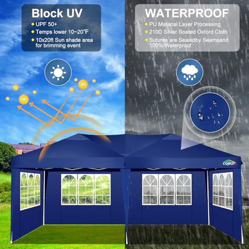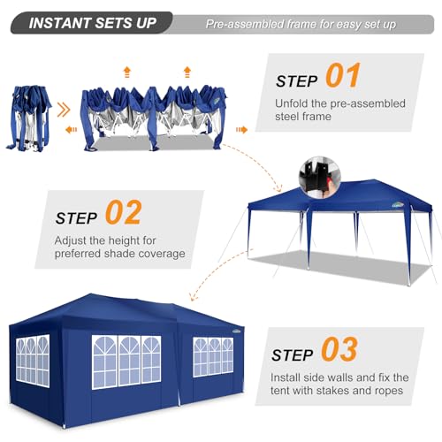 COBIZI Faltpavillon 3x6m Wasserdicht Stabil Winterfest Pop Up Zelt Mit 6 Seitenteilen, UV-Schutz, Faltbarer Pavillon Für Markt, Freien Event, Garten – Navy Blau