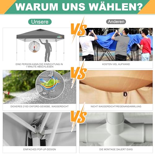 COBIZI Pavillon 3×3 Faltpavillon 3×3 wasserdicht stabil Winterfest mit | Pop-Up Klicksystem | UV-Schutz 50+ | Partyzelt Garten Zelt klappbar 3x3m mit Lüftungsöffnung inkl. Tasche & 8X Erdspieße, Grau