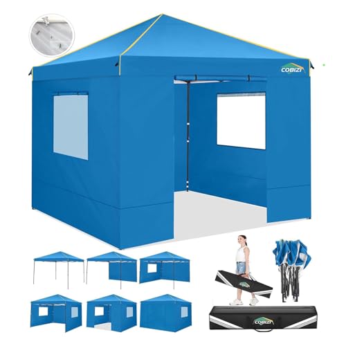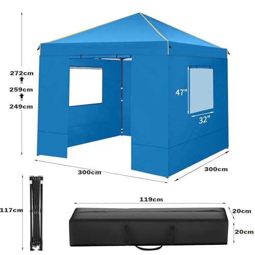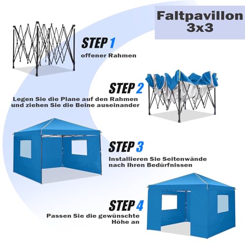 COBIZI Pavillon 3×3 Wasserdicht Stabil Faltpavillon 3×3 Profi mit 4 Seitenteilen Pop Up Pavillon Pavillon Faltbar UV-Schutz 50+ Partyzelt für Strand Hochzeit Camping, Blau