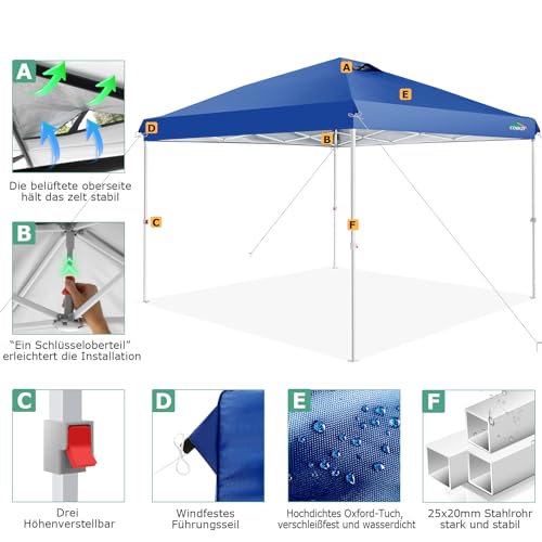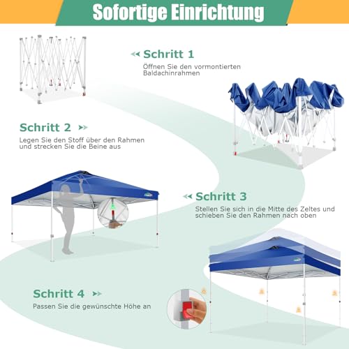 【Hochwertige Stoffe】 Das silberbeschichtete Oxford-Gewebe 210D hält einem wasserdichten druck von bis zu 1000 Pa stand und einen UV-Abschirmung von 53+ besitzt. Idealer Pavillon zur Anwendung als Sonnenschutz, für die Terrasse, Balkon, Pool, Garten, Camping, Veranstaltung, Flohmarkt oder beim nächsten Ausflug.