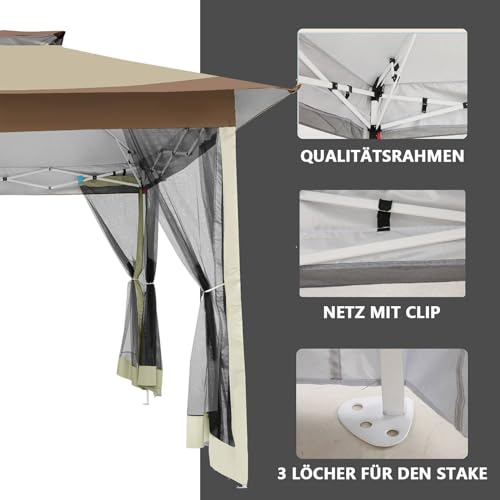 【Verschiedene Anlässe】Der 3×3 m Faltpavillon kann nach Belieben mitgenommen und verwendet werden und bietet gleichzeitig einen großen Schattenplatz für 8-10 Personen. Qualifiziert für Familientreffen, Innenhof oder Poolschatten, Geburtstagsfeier, Hochzeitsbankett usw.
