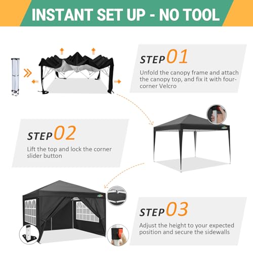 ☀【Schnelle Installation】Das pavillion klappbar 3x3m kann in wenigen Minuten aufgebaut werden, es ist einfach und leicht, es sind keine Werkzeuge erforderlich