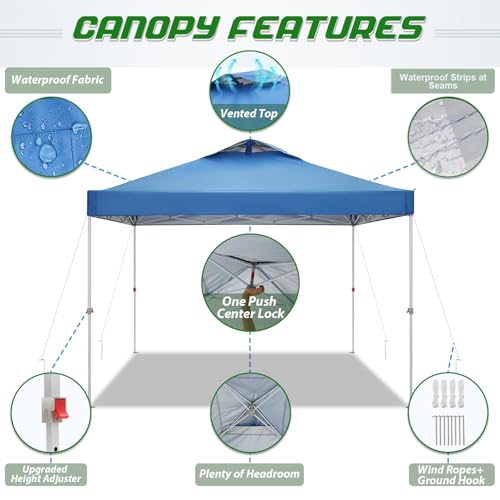 COBIZI Pavillon 3×3 Wasserdicht Stabil Winterfest mit Entlüftung,UV-Schutz 50+ Faltbarer Popup Pavillon,Höhenverstellbar Partyzelt für Strand, Gartenparty, Camping, Blau