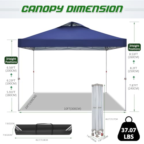 【3-Stufige Höhenverstellbar】Das 3×3 faltbar partyzelt verfügt über 3 verstellbare Höhen, die Höhen betragen 240 cm–250 cm–260 cm, das Paketgewicht beträgt 12,5 kg undes werden außerdem 4 Windseile und 8 Bodennägel zur Befestigung des Pavillons mitgeliefe.