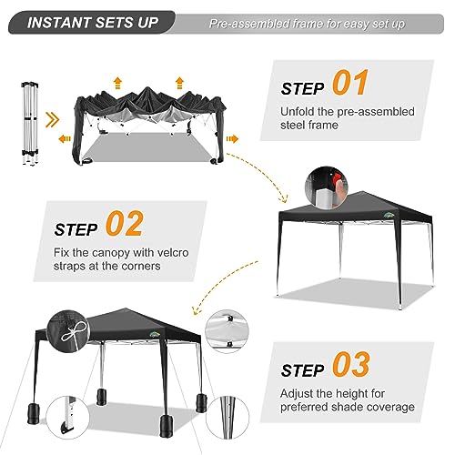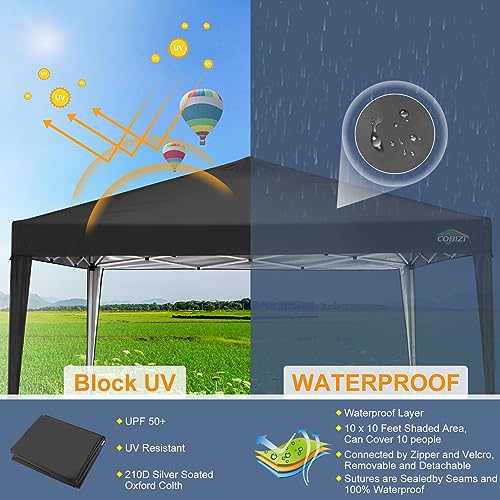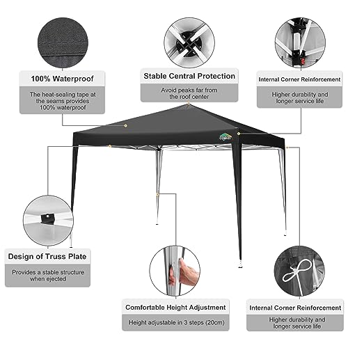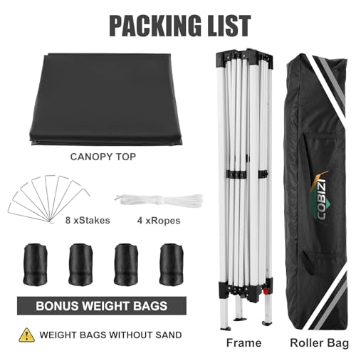 COBIZI Pavillon 3x3m Wasserdicht Pop Up Pavillon 3×3 faltbar Faltpavillon Gartenpavillon Partyzelt Faltzelt 3×3 höhenverstellbar Bierzelt mit 4 Sandsack(Schwarz