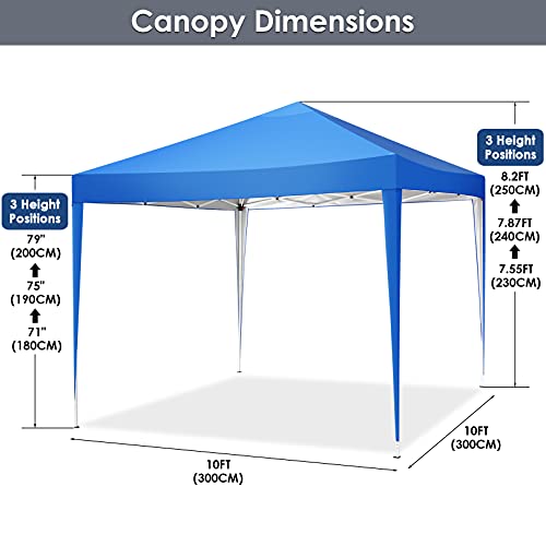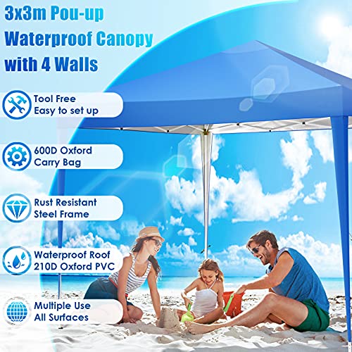 TOOLUCK Pavillon 3x3m Wasserdicht Zäh Faltpavillon Pop up Gartenpavillon Partyzelt Bierzelt Faltbar Gartenzelt mit 4 Sandsack, Höhenverstellbar, Blau