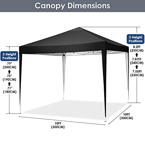 COBIZI Pavillon 3x3m Wasserdicht Stabil Faltpavillon Pop up Gartenpavillon Partyzelt Bierzelt Faltbar Gartenzelt mit 4 Sandsack, Höhenverstellbar, Schwarz
