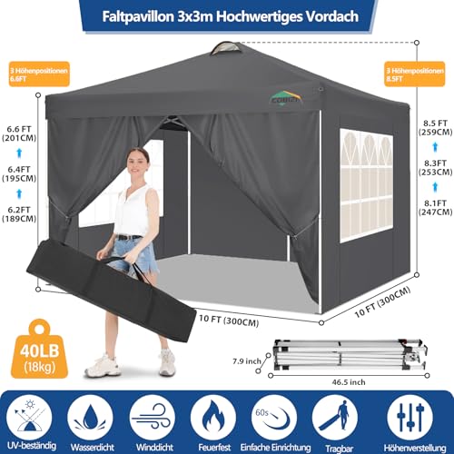 ✅ 𝑬𝒊𝒏𝒇𝒂𝒄𝒉𝒆 𝒖𝒏𝒅 𝒔𝒄𝒉𝒏𝒆𝒍𝒍𝒆 𝑰𝒏𝒔𝒕𝒂𝒍𝒍𝒂𝒕𝒊𝒐𝒏✅ Der pavillon 3×3 ist einfach zu installieren und bietet einen zuverlässigen Abschirmung. Faltpavillon 3×3 verfügt über ein Rahmen mit geraden Beinen, sodass er von trotzdem 1-2 Personen aufgebaut werden kann. Der Rahmen des pavillion klappbar 3x3m ist faltbar, was ihn sehr o. k. macht und problemlos in den Kofferraum eines Familienautos passt.