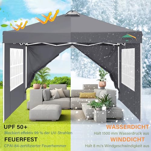 ✅ 𝑯𝒐𝒄𝒉𝒘𝒆𝒓𝒕𝒊𝒈𝒆𝒔 𝑴𝒂𝒕𝒆𝒓𝒊𝒂𝒍✅Das pavillon 3×3 wasserdicht erschütterungsfest besteht jeglicher hochwertigem 210D Oxford-Gewebe mit PVC-Beschichtung. Gartenpavillon 3×3 bietet UV-Abschirmung von 50+ und ist wasserdicht. Jeder Nähte sind heißversiegelt. Das pavillon wasserdicht hat eine Wassersäule von 1000 Pa und hält Windstärken von 4-6 stand. Um Ihren pavillion klappbar langfristig zu schützen, empfehlen wir Ihnen, ihn zusammenzufalten und im Innenbereich zu deponieren, vulgo bei extremen Wetterbedingungen wie Sturm und starkem Regen.