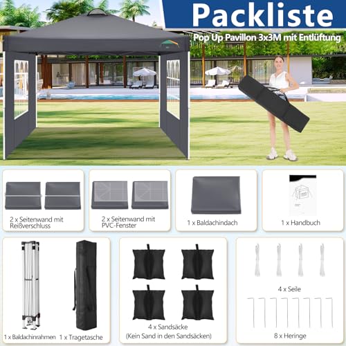✅ 𝑳𝒊𝒆𝒇𝒆𝒓𝒖𝒎𝒇𝒂𝒏𝒈 𝒖𝒏𝒅 𝑺𝒆𝒓𝒗𝒊𝒄𝒆✅ Pavillon 3×3 + 4x Seitenwände + 8x Nägel + 4x Spanngurte + 4 Sandsäcke. Mit einer Tragetasche, damit Sie sie bequem abwischen können. Bei längerem Nichtgebrauch einfach zerlegen und im Innenbereich aufbewahren, um die Lebensdauer zu verlängern. Abwenden Sie am besten den Einsatz bei extrem schlechtem Wetter.