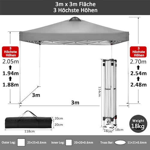 Mehrzweck Pavillon: Partyzelt 3×3 statt dessen außenaktivität, hochzeit, event, festival, flohmarkt, garten, party, strand, spielplatz, genießen sie einen wunderschönen urlaub via familie und freunden.