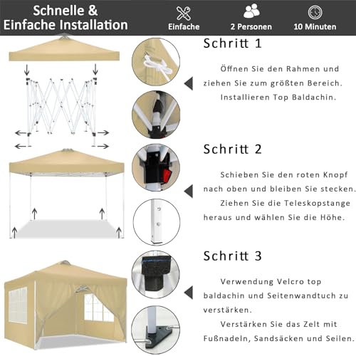 Mehrzweck Pavillon: Partyzelt 3×3 zugunsten außenaktivität, hochzeit, event, festival, flohmarkt, garten, party, strand, spielplatz, genießen sie einen wunderschönen urlaub mithilfe familie und freunden.