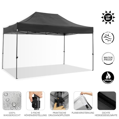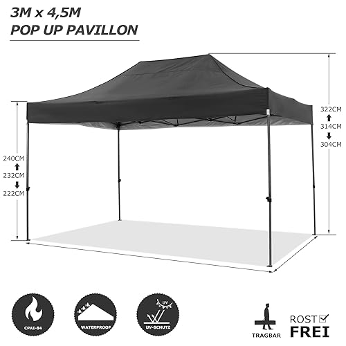 COBIZI Pavillon 3×4,5 wasserdicht stabil Winterfest 3.0, Faltpavillon 3×4,5 Gartenpavillon UV Schutz Keine Seitenwande Festival Pavillon, Schwarz