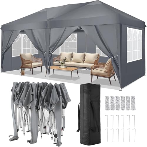 ✅Einfache und sichere Montage: Pavillon 3×6 lässt sich mühelos aufbauen und verstauen.Fußwickel sichert großes Partyzelt gegen Wasseransammlungen und verleiht eine elegante Postanschrift. Faltpavillon ist mit einem Hauptschalter und einem Daumenverriegelungssystem ausgestattet, erleichtert Montage, schützt Finger und gewährleistet Haltbarkeit.