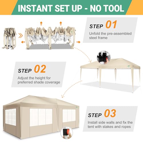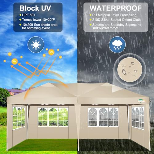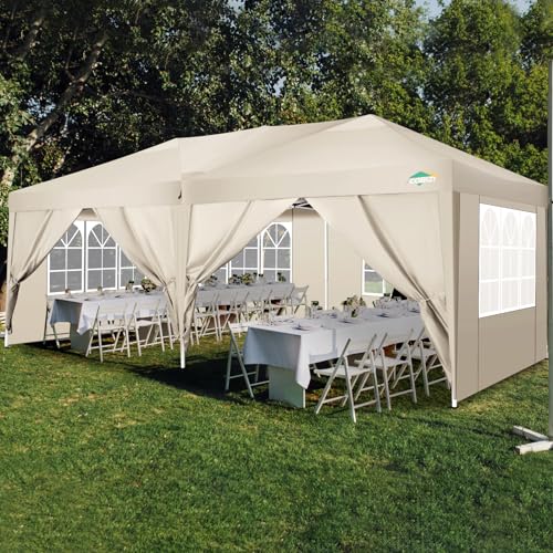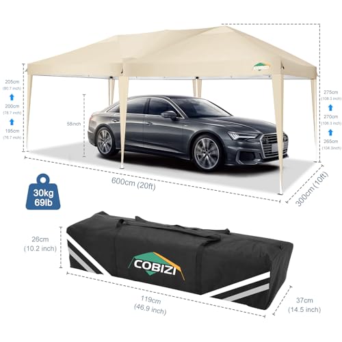 COBIZI Pavillon 3×6, Pop up Faltpavillon 3×6 wasserdicht stabil Gartenzelt UV-Schutz Pavillon Klappbar 3x6m mit 6 Seitenwänden & 1Tragetasche für Garten Party Festival Event Picknick(Khaki)