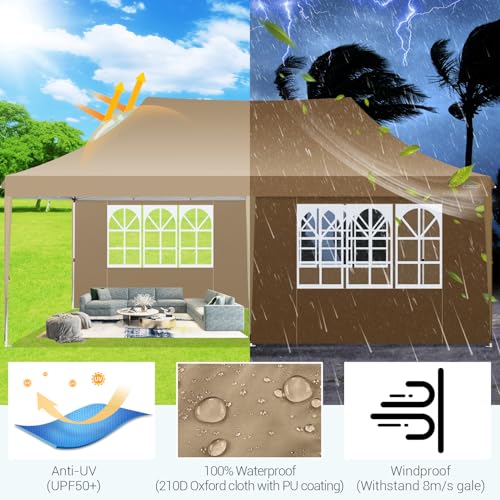 COBIZI Pavillon 3x6m Faltpavillon Wasserdicht Stabil Winterfest Partyzelt Faltbar Pop Up Pavillon mit 6 Seitenwänden UV-Schutz 50+ Gartenpavillon für Strand Hochzeit Camping, Khaki