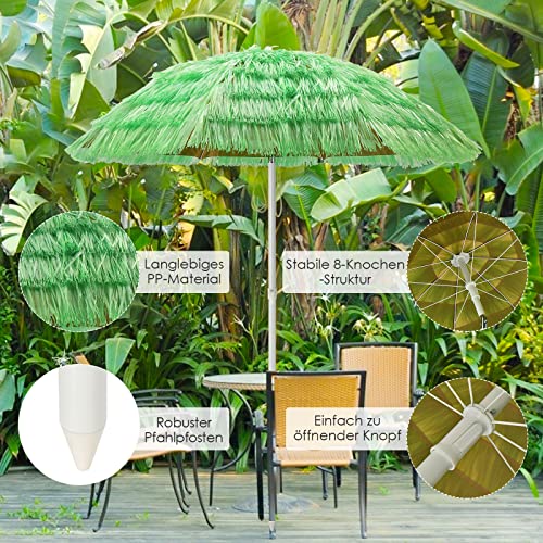 【Einstellbare Hang】Dieser Strandschirm lässt sich in der Hang verstellen, dadurch werden Sie und Ihre Lieben immer mit ausreichend Schatten versorgt. Durch seinen strohartigen Schirm wirkt er sehr originell.