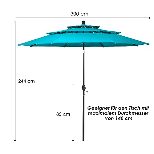 ⛱️【Bringt mehr Schatten】Der Sonnenschirm mit 3 m Durchmesser wird aus strapazierfähigem Stoff geliefert, der wasserabweisend, atmungsaktiv und ideal als Schattenspender ist. Durch die Anziehung der Überdachung per Kurbel wird zudem die Beschattung maximiert.