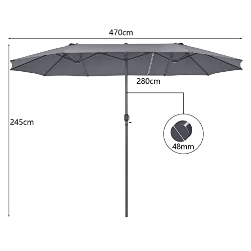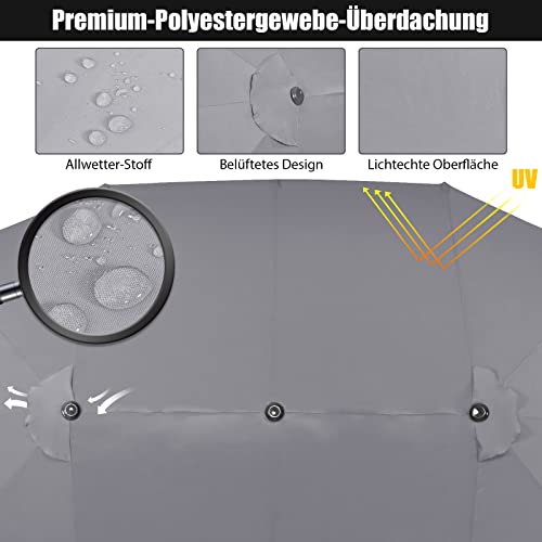 【Schirmdach in doppelter Größe】Der Doppelsonnenschirm bietet Ihnen und einer Serie von Gartenmöbeln ausreichend Platz zur Sicherheiten und sorgt für Schatten und Kühlung an heißen Sommertagen. Außerdem gibt es oben drei Belüftungslöcher, um die Zirkulation für die Erzeugung einer frischen Brise zu verstoffwechseln.