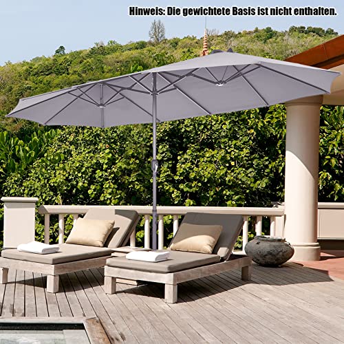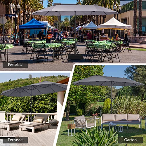 【Breite Anwendung an verschiedenen Orten】Dieser Doppelsonnenschirm mit effektivem Sonnenschutz eignet sich für verschiedene Dekorationsstile im Freien, wie Terrasse, Garten und Hinterhof. Dieser Sonnenschirm kann auch im gewerblichen Fragment verwendet werden und schafft schattigen Platz für Märkte, Cafés und Bars im Freien.