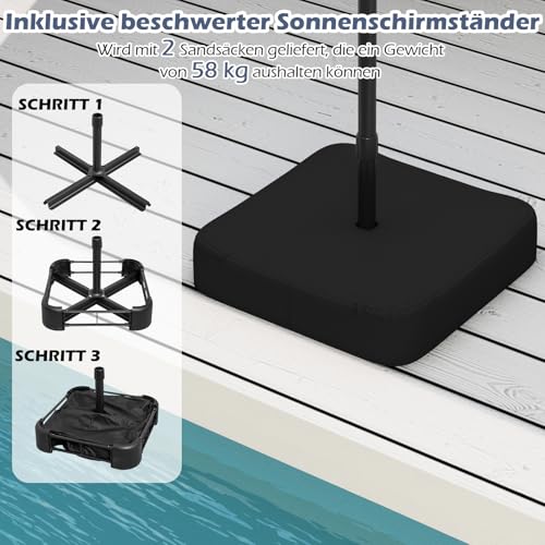 Inklusive beschwertem Schirmständer, komplett mit 2 Sandsäcken, die Stabilität gewährleisten