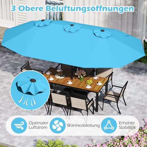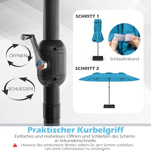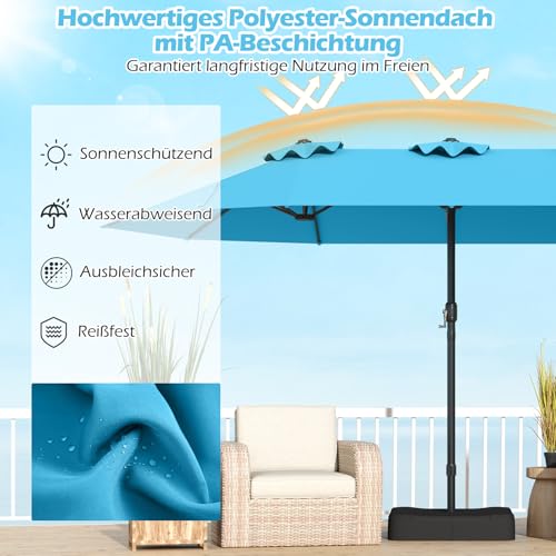COSTWAY Doppelsonnenschirm mit Ständer, 443 x 263 cm, Sonnenschirm Groß XXL, UPF 50+, Gartenschirm mit Kurbel, Terrassenschirm, Marktschirm für Garten, Terrasse & Pool (Türkis)