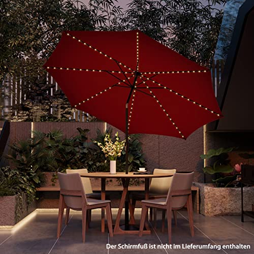 【Erstklassiges belüftetes Schirmdach】Der beleuchtete Sonnenschirm besteht aus hochwertigem und strapazierfähigem Polyestergewebe, das nicht wohl verschleißfest und lichtbeständig ist und eine langfristige Nutzung gewährleistet, sondern auch Abschirmung vor Nieselregen oder Sonne bietet. Darüber hinaus gibt es eine belüftete Oberseite für Luftzirkulation und Stabilität.