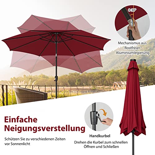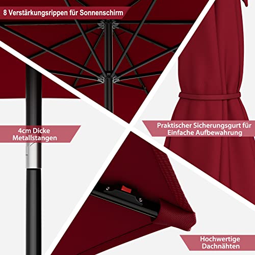 【Einfache Bedienung】Dank der Kurbel lässt sich der Sonnenschirm leicht öffnen und induzieren, in 2 Teile zerlegen und zur platzsparenden Aufbewahrung auf eine kompakte Größe zusammenklappen. Wir empfehlen die Verwendung einer Sonnenschirmständer (nicht im Lieferumfang enthalten), um den Sonnenschirm zu sichern und den Windwiderstand zu tauschen.
