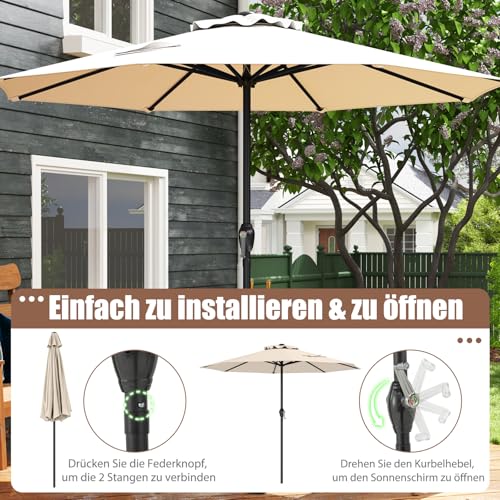 【Einfach zu installieren und zu öffnen】Der Sonnenschirm lässt sich schnell zusammenbauen. Sie können die beiden Abschnitte der Schirmstange zusammenschieben, bis sie fest miteinander dependent sind. Dank eines benutzerfreundlichen Kurbelsystems lässt sich der Schirm mühelos öffnen und kombinieren.