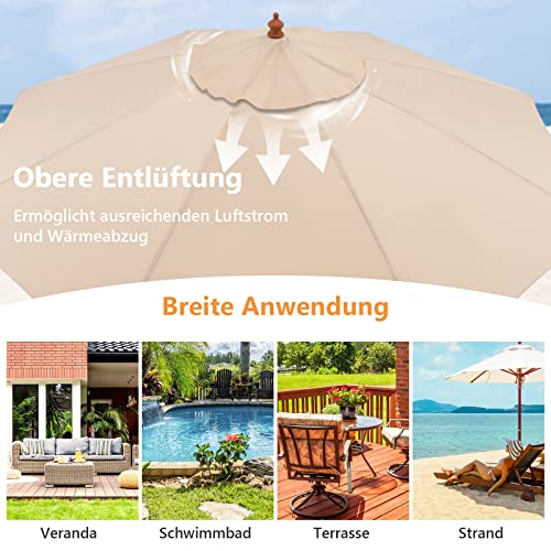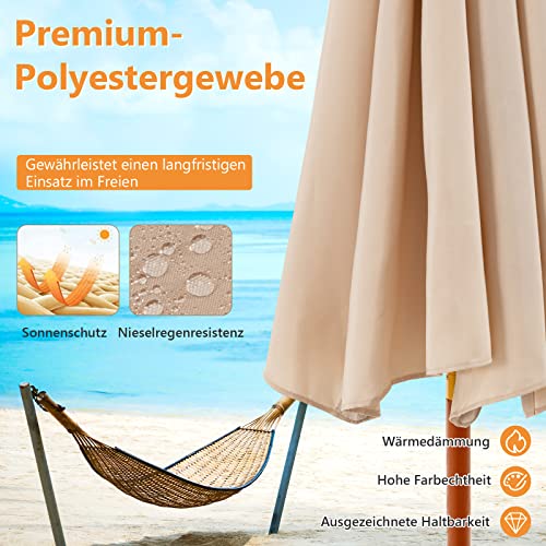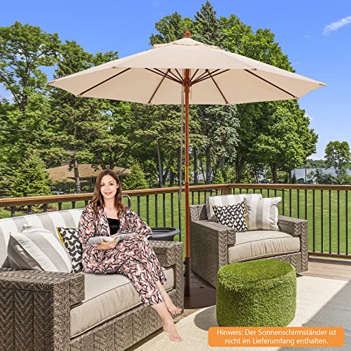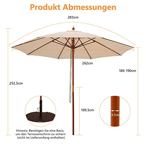 【Wichtige Informationen】Die Basis ist nicht im Lieferumfang enthalten und dieser Sonnenschirm benötigt eine beschwerte Basis für zusätzliche Stabilität und Sicherheit. Außerdem kann der Sonnenschirm mit einem Esstisch im Freien kombiniert werden, um Ihre Mahlzeiten im Freien mit Ihrer Familie oder Freunden zu genießen (Durchmesser der Holzstange: 3,7 cm).