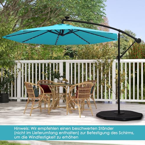【Energiesparendes Solarbeleuchtungssystem】Der 300 cm große, solarbetriebene Ampelschirm ist mit 40 Lampenperlen ausgestattet, die Ihre Terrasse und Sommernächte erhellen und verschönern können. Praktischerweise wird die Beleuchtung über einen Netzschalter gesteuert und von einem Solarpanel gespeist, das tagsüber Sonnenenergie sammelt und nach vollständiger Aufladung 7 Stunden lang leuchtet.