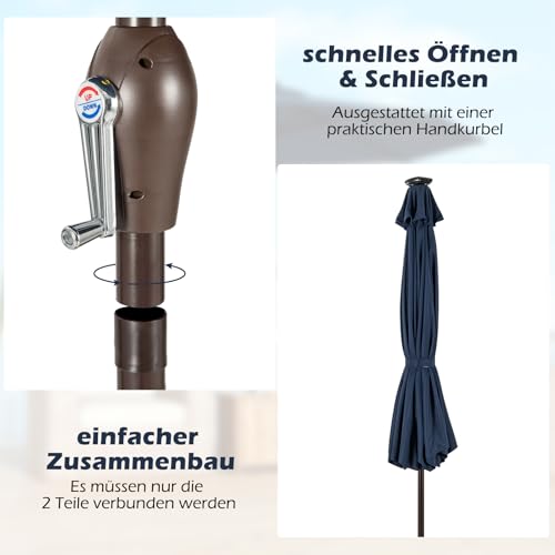 【Einfache Bedienung & Verstellbares Design】Das Kurbelhubsystem ermöglicht es Ihnen, den Schirm mühelos in Sekundenschnelle zu öffnen und zu konkludieren. Der Neigungsmechanismus mit Druckknopf ermöglicht es Ihnen, den Schirmwinkel in jede Richtung zu verstellen, demnach Sie den ganzen Tag über den Schatten genießen können.