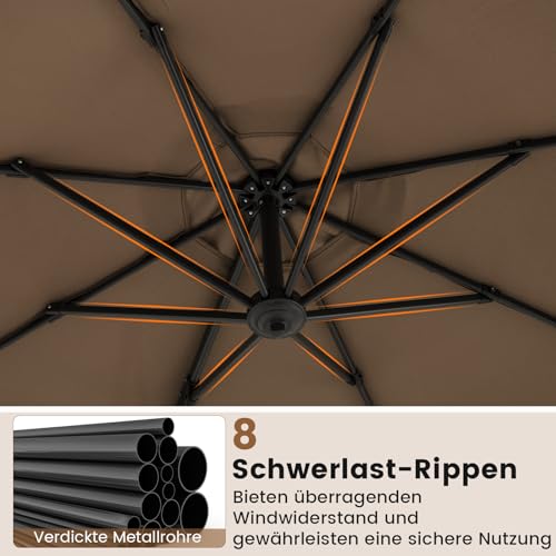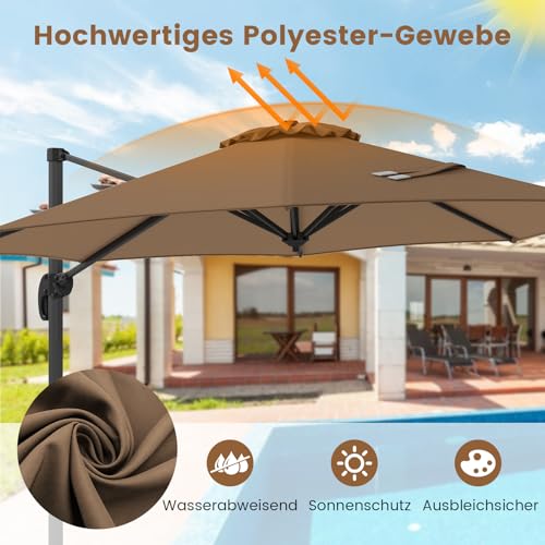 COSTWAY Sonnenschirm 300 x 300 cm, Ampelschirm mit Kurbel, Gartenschirm neigbar, 360° drehbar, großer Terrassenschirm, runder Marktschirm für Garten, Terrasse (Braun)