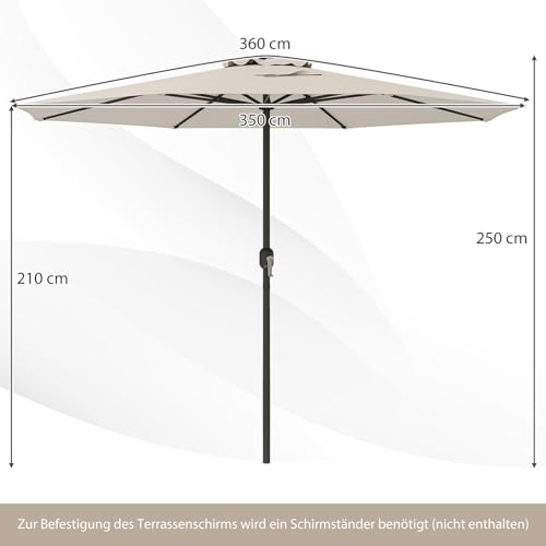 Zum Sichern des Terrassenschirms ist ein Schirmständer erforderlich (nicht im Lieferumfang enthalten)