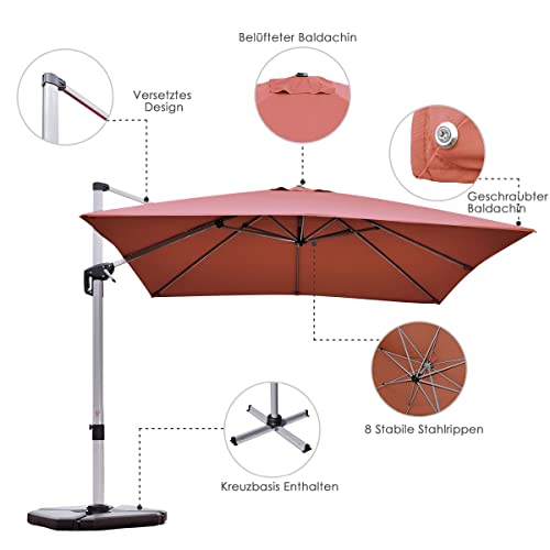 ⛱️【Hochwertige Materialien】Der Polyester ist sonnenbeständig, farbfest, witterungsbeständig und verschleißfest, was den Ampelschirm an Stelle den langfristigen Außengebrauch ideal macht. Lüftungslöcher garantieren die Luftzirkulation.