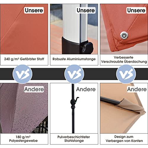 ⛱️【Aluminiumstange & 8 robuste Rippen】Der Ampelschirm hat eine pulverbeschichtete Aluminiumstange und 8 robuste Metallrippen, die ihn Vulgo bei Wind und Regen standfest machen. Durchmesser der Schirmstange: 53 x 80 mm. Vulgo der Kreuzfuß trägt zur Konstanz bei (Sonnenschirmständer nicht enthalten).