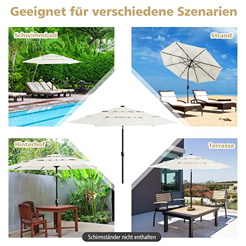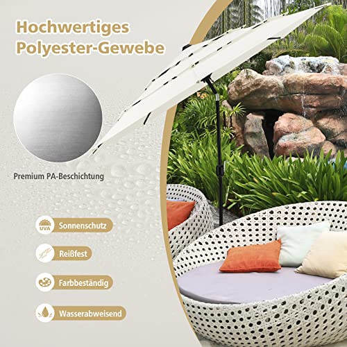 COSTWAY Sonnenschirm windfest stabil, 300 cm Gartenschirm mit Kurbel, beidseitig um 45° knickbar, UV-Schutz, Sonnenschutz, Terrassenschirm belüftet, Marktschirm für Terrasse, Garten, Balkon (Beige)