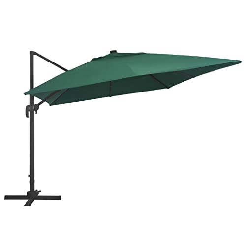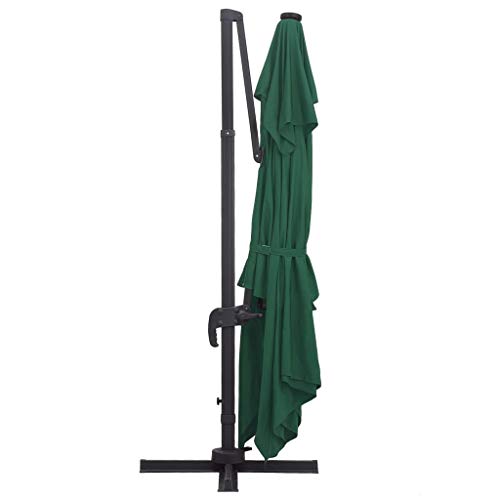 Home Products Freischwinger-Regenschirm mit LED-Lichtern und Aluminiumstange, 400 x 300 cm, Grün – Dieser elegante Sonnenschirm zum Aufhängen ist perfekt, um Schatten zu ackern und Sie vor den schädlichen UV-Strahlen der Sonne zu schützen. Aus UV-Abschirmung- und lichtechtem Polyester gefertigt, bietet Ihnen die Sonnenschirmhülle optimalen Abschirmung vor der Sonne und ist leicht zu reinigen. Es verfügt über 24 solarbetriebene LEDs, um Ihren Wohnraum im Freien automatisch zu beleuchten und ein gemütliches und romantisches Ambiente zu ackern, wenn die Sonne untergeht. Es kommt mit einem stabilen Kreuzfuß für mehr Stabilität. Unser Gartenschirm lässt sich einfach durch einfaches Drehen des Knopfes an der Stange öffnen und deduzieren. Der Winkel der Absicherung kann durch Drücken und Ziehen des Griffs nach oben und hinunter eingestellt werden. Der Mittelstock kann mittels Pedale auch um 360 Nuance gedreht werden. Die starke pulverbeschichtete Aluminiumstange und die 8 robusten Rippen machen diesen Sonnenschirm sehr leistungsfähig und langlebig. Der Ausarbeitung ist einfach zu montieren. Bitte berücksichtigen Sie, dass wir empfehlen, den Schirmstoff mit einem Imprägnierspray zu abfassen, wenn er starken Niederschlägen ausgesetzt ist.
