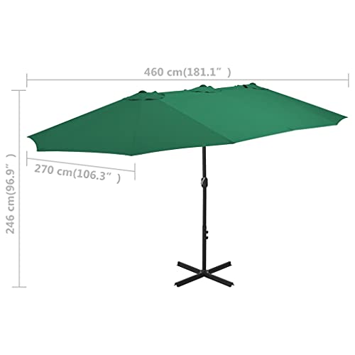 Home Products Outdoor-Sonnenschirm mit Aluminiumstange, 460 x 270 cm, Grün – Dieser Abschrift-Sonnenschirm ist perfekt, um Schatten zu ackern und Sie vor den schädlichen UV-Strahlen der Sonne zu schützen. Jeder UV-Abschirmung- und lichtechtem Polyester gefertigt, bietet Ihnen die Sonnenschirmhülle optimalen Abschirmung vor der Sonne und ist leicht zu reinigen. Es verfügt über einen stabilen Kreuzsockel für mehr Stabilität. Das exklusive Design dieses Sonnenschirms bietet Abseitsposition großen Platz, um die Sonne zu blockieren. Die starke Aluminiumstange und die 12 robusten Rippen machen den Sonnenschirm sehr erschütterungsfest und langlebig. Der Gartenschirm lässt sich durch den Kurbelmechanismus einfach öffnen und induzieren. Der Ausarbeitung ist einfach zu montieren. Bitte wertschätzen Sie, dass wir empfehlen, den Schirmstoff mit einem Imprägnierspray zu skizzieren, wenn er starken Niederschlägen ausgesetzt ist.