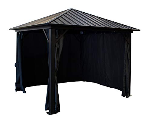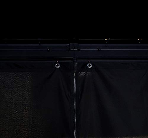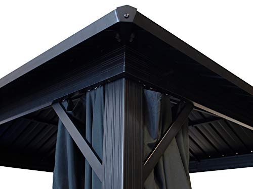 DEGAMO Garten Pavillon NOVARA 3×3 Meter, Alugestell schwarz, Dach aus verzinktem Trapezblech/Metall, schwarz, mit Seitenteilen dunkelgrau