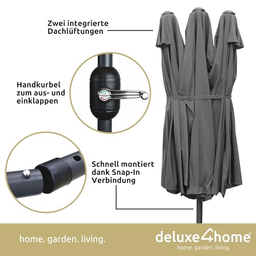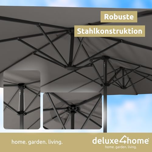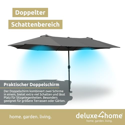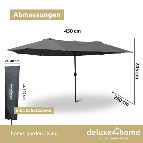 deluxe4home® XXL Doppelsonnenschirm 4,5m x 2,6m I Sonnenschirm Extra groß I Terrassenschirm mit Handkurbel I Ampelschirm I Faltschirm mit Metallstange