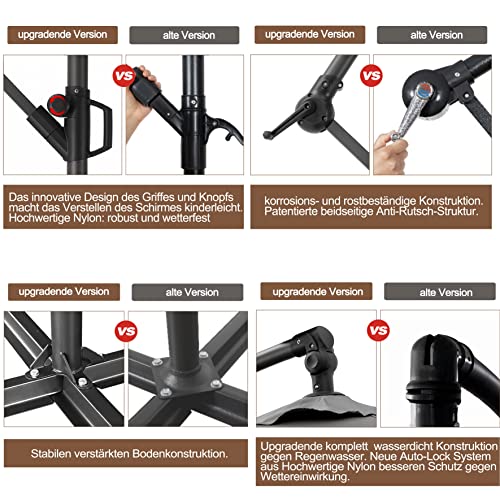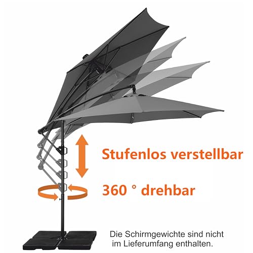 Deuline® ALU Ø300 cm 360 Grad drehbare Ampelschirm Sonnenschirm mit Schutzhülle und Ständer UV-Schutz Wasserabweisende Bespannung Gartenschirm Marktschirm Mallorca-Elite 521815