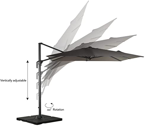 Dank eines leichtgängigen Kurbelmechanismus lässt sich der Sonnenschirm kinderleicht auf- und -zuspannen. Selbst bei zutiefst stehender Sonne lässt sich der Neigungswinkel des Ampelschirms spielend leicht 4-abgestuft bis zu 80° verstellen. Das massive Drehgelenk aus Stahl mit Fußpedal ermöglicht ein müheloses Drehen des Schirmes um 360°. Alle Nieten und Ständerbefestigungschrauben sind aus rostfreiem Edelstahl.